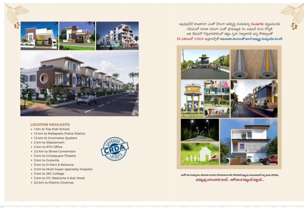 π The project is located on Nallapadu β Tadikonda Route, Guntur. It is well-connected to key areas while providing a peaceful residential environment.